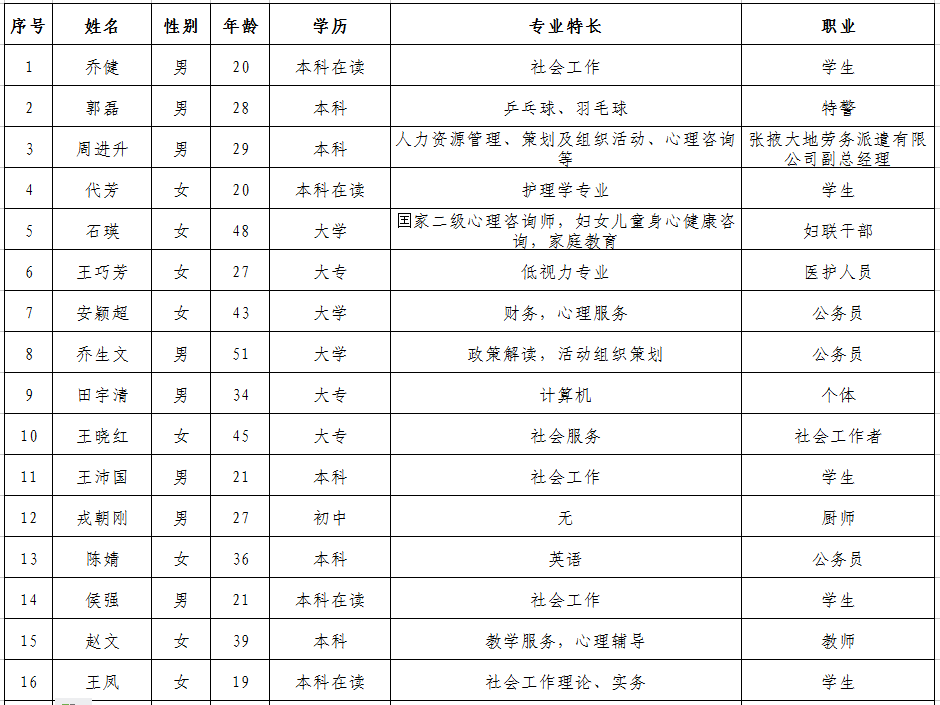 張掖市慈善協(xié)會(huì)第一批志愿者名單