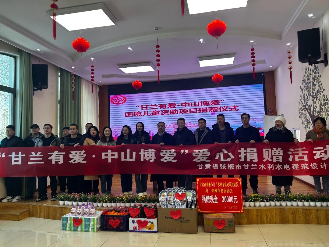 為大力弘揚(yáng)扶貧濟(jì)困的慈善理念,發(fā)揮國(guó)有企業(yè)、民主黨派在凝聚愛(ài)心服務(wù)力量、組織實(shí)施慈善服務(wù)項(xiàng)目、參與新時(shí)代文明實(shí)踐方面的作用。3月28日下午,由張掖市甘蘭水利水電建筑設(shè)計(jì)院、民革張掖市委會(huì)與張掖市慈善協(xié)會(huì)共同發(fā)起的"甘蘭有愛(ài)·中山博愛(ài)"困境兒童資助項(xiàng)目捐贈(zèng)儀式,在市兒童福利院舉行。活動(dòng)現(xiàn)場(chǎng),甘蘭水利水電建筑設(shè)計(jì)院與民革張掖市委員會(huì)向張掖市慈善協(xié)會(huì)捐贈(zèng)現(xiàn)金30000元。